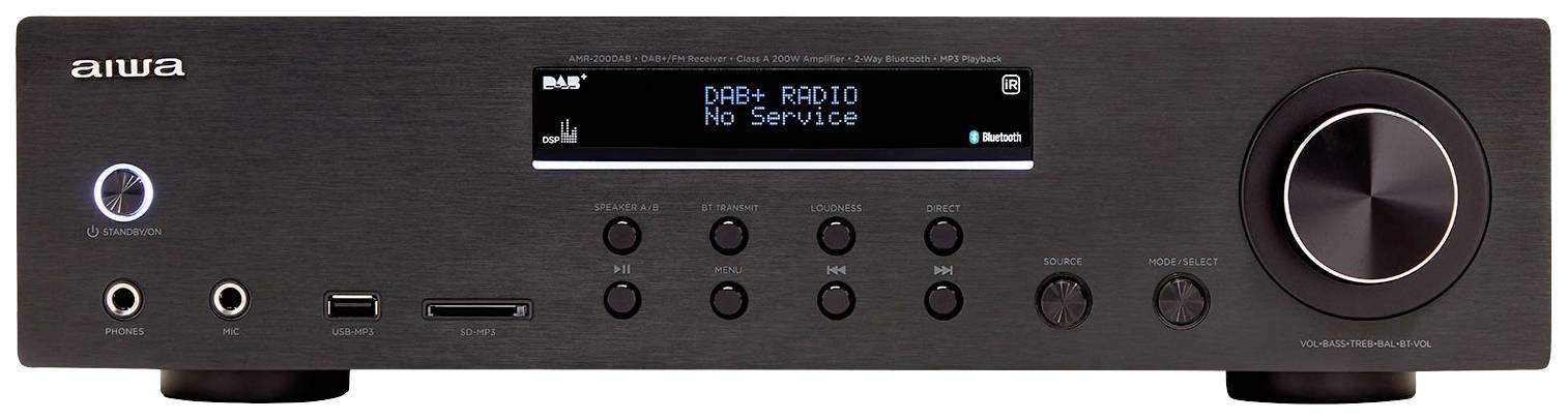 Aiwa AMR-200DAB AV-receiver 2x100 W Zwart Bluetooth, DAB+, Incl. luidsprekers, Luidspreker A/B-schakeling, USB