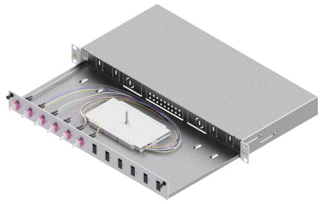 EasyLan glasvezelsplitterbox Grade C 19-inch 1HE, 12 poorten, 6x LC-duplex, OM4