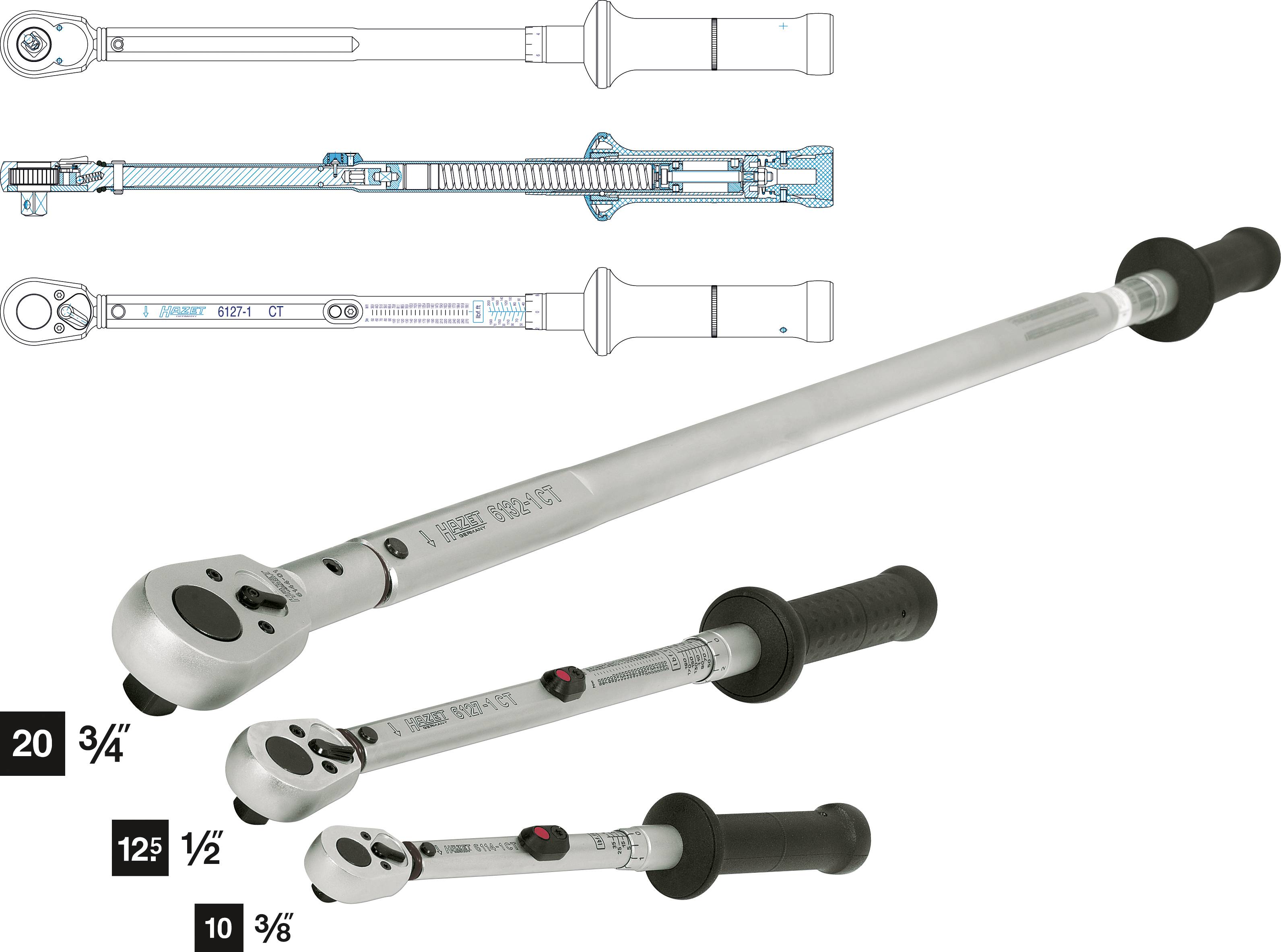 Hazet 6114-1CT 6114-1CT Momentsleutel Met omschakelbare ratel 3/8" (10 mm) 6.8 - 54.2 Nm
