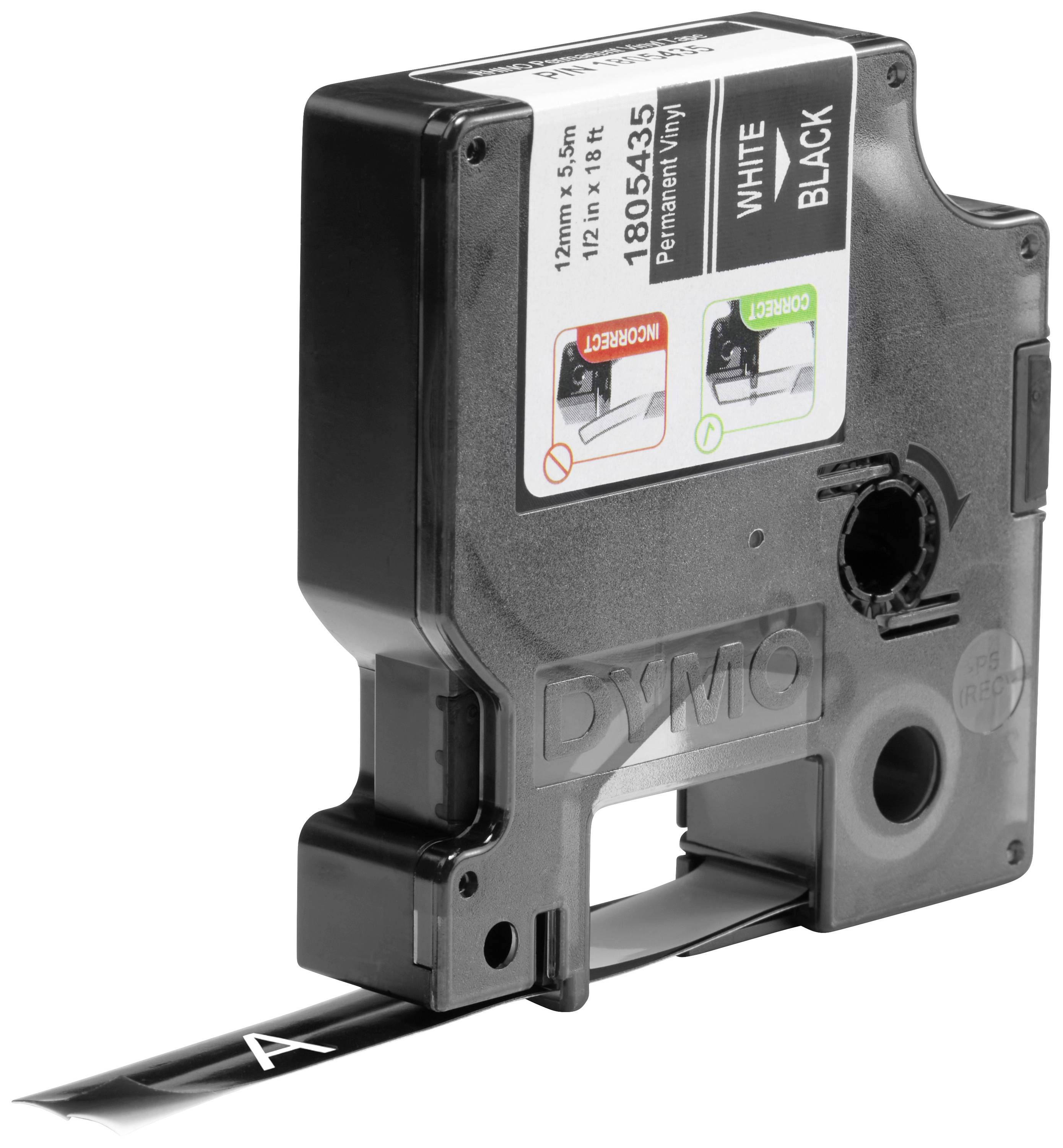 Labeltape DYMO IND RHINO 1805435 Vinyl Tapekleur: Zwart Tekstkleur:Wit 12 mm 5.5 m